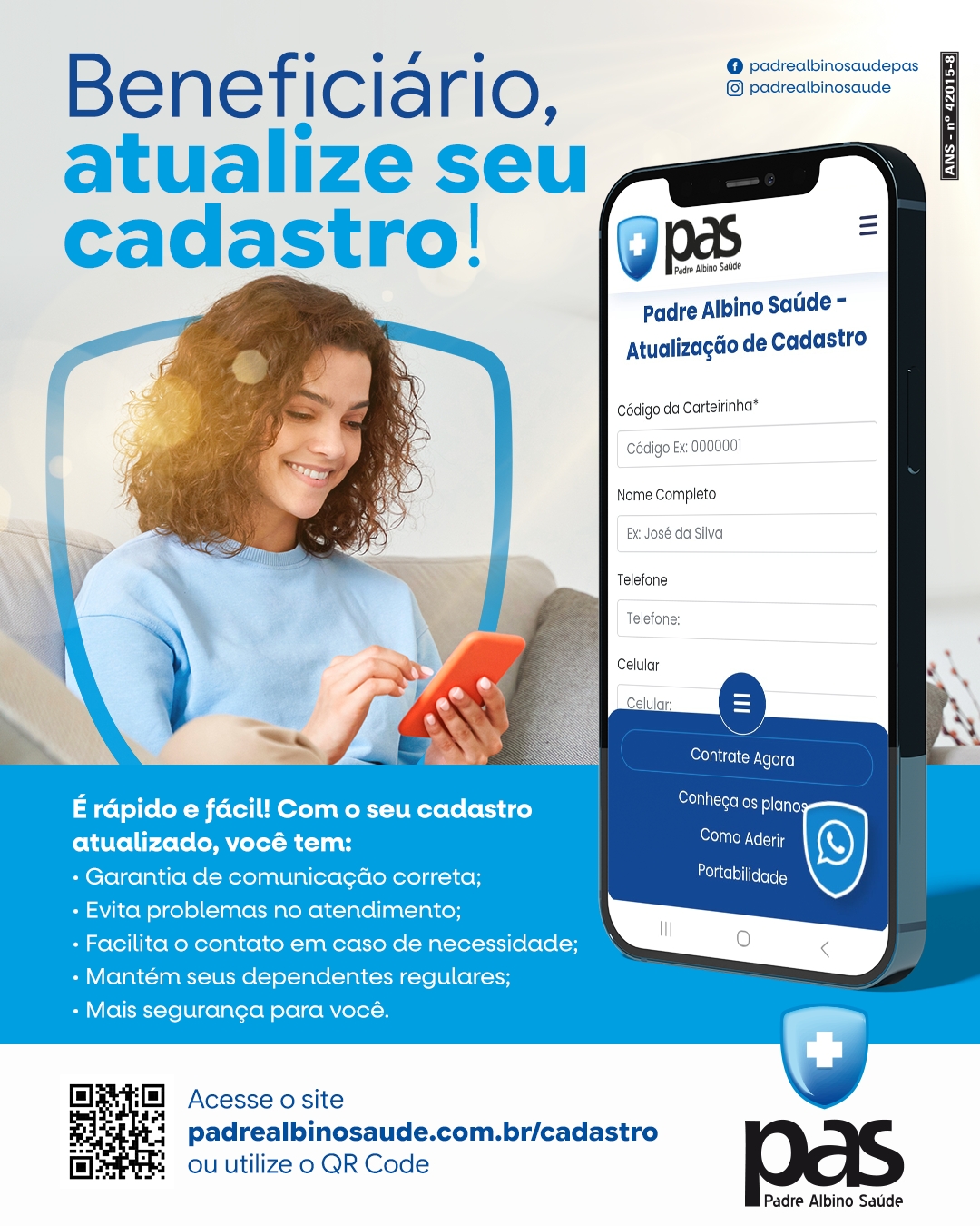 Manter os dados atualizados é importante para garantir atendimento mais ágil, seguro e eficiente. Pensando nisso, o Padre Albino Saúde (PAS) reforça a importância da atualização cadastral dos beneficiários.