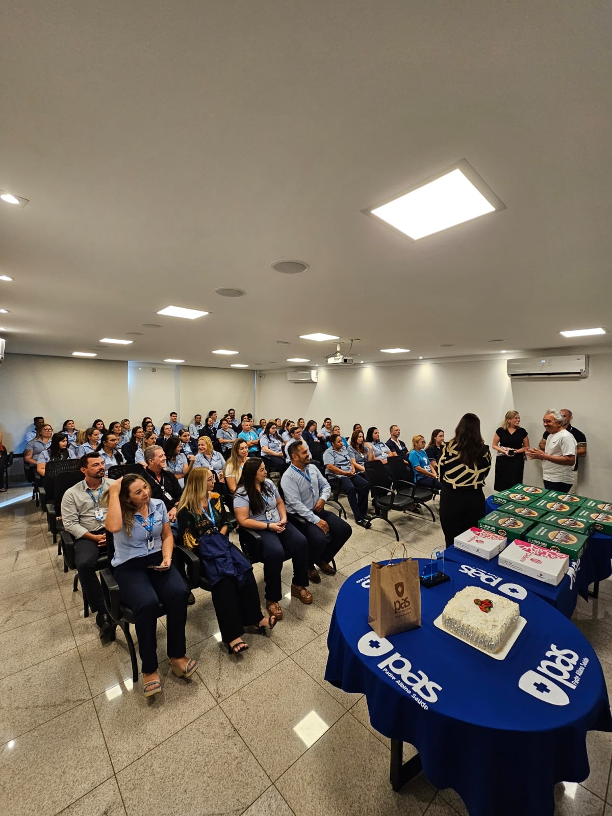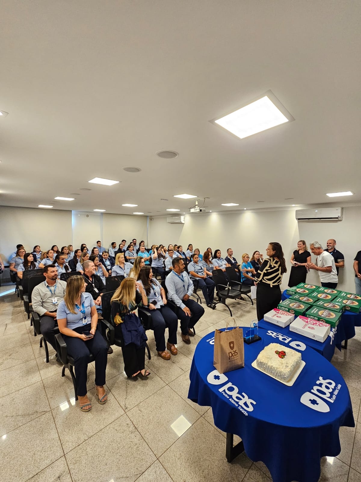 Durante o encontro, foram comemorados os aniversariantes do mês, além da recepção aos novos contratados e colaboradores efetivados, reforçando o propósito do PAS com o acolhimento e o fortalecimento de suas equipes.