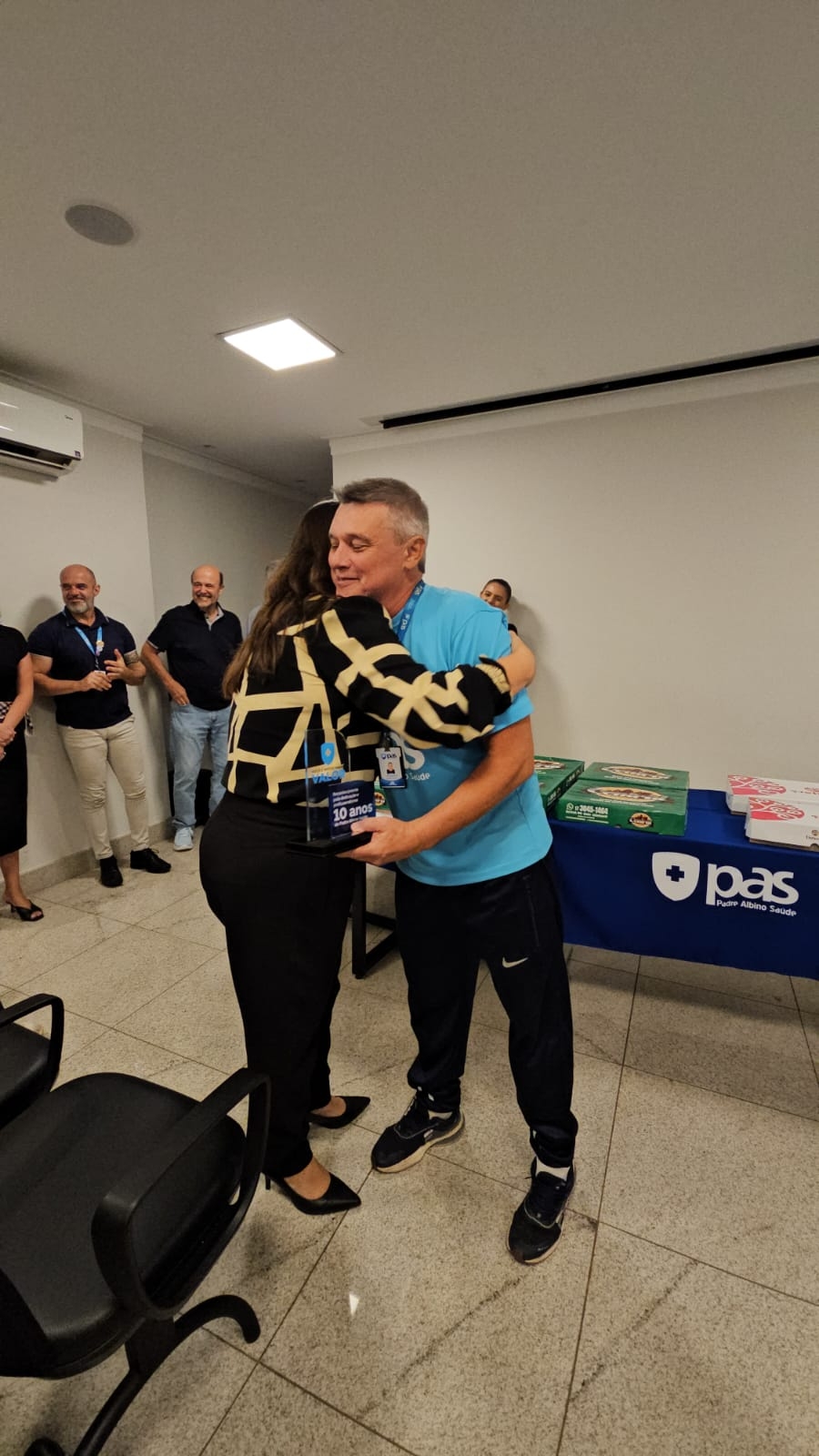 A diretora executiva do PAS, Vânia Regina Catóia Garcia, também ressaltou o comprometimento do colaborador ao longo dos anos. “São 10 anos conosco, sempre prestando trabalho de excelência aos beneficiários e ao PAS. Pessoa comprometida, atenciosa e profissional maravilhoso, que todos elogiam pelo cuidado e atenção. Muito obrigada e continue assim”, afirmou.