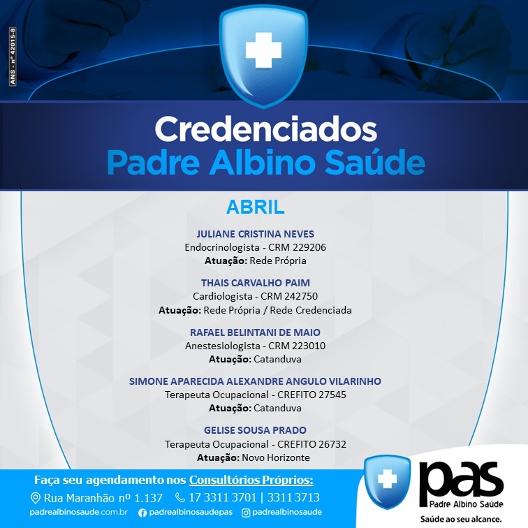 Estes são os novos credenciados do Padre Albino Saúde!