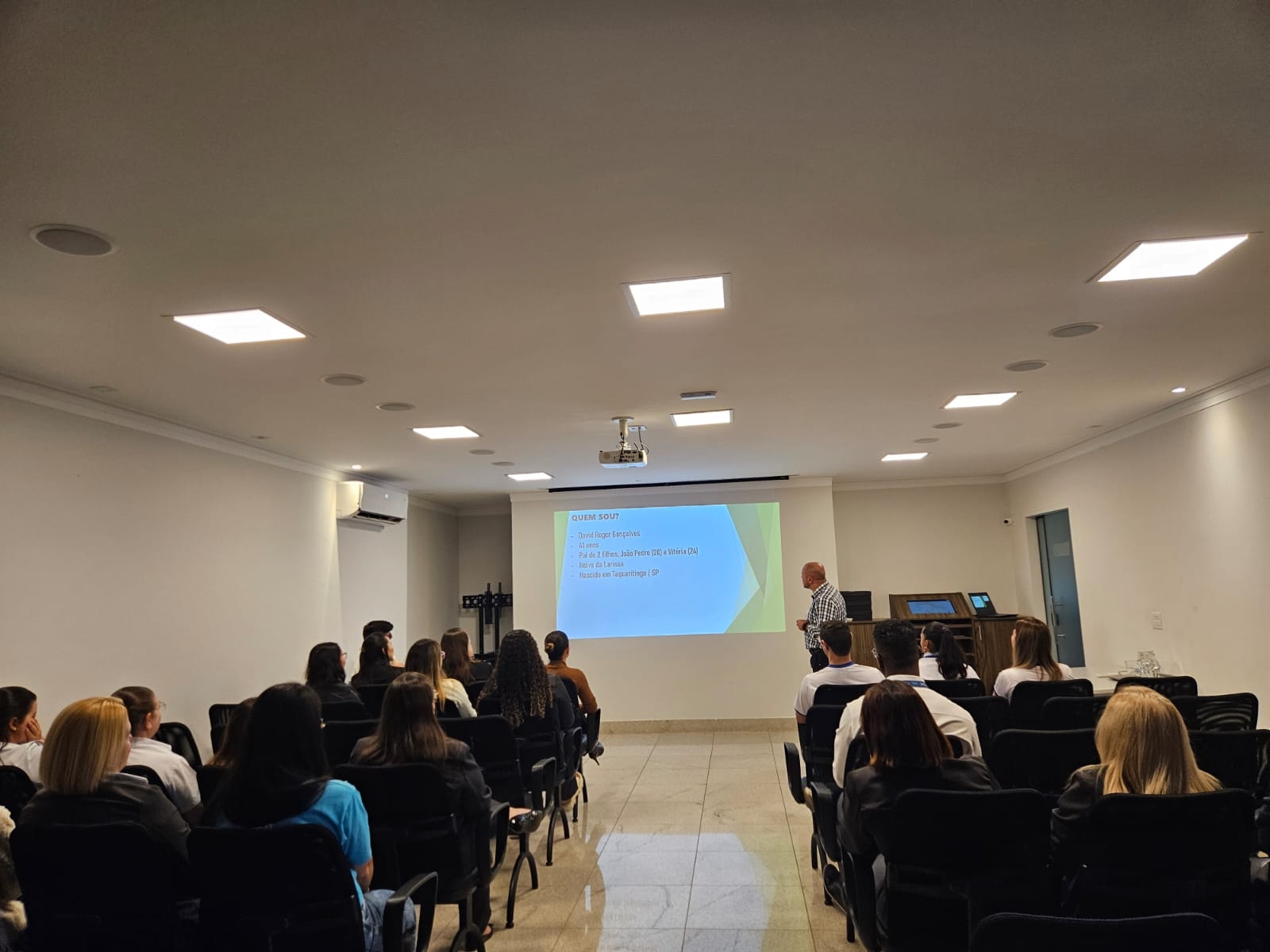 Durante a palestra, David compartilhou sua trajetória no mundo dos negócios, destacando momentos de desafios e superações que moldaram sua trajetória.