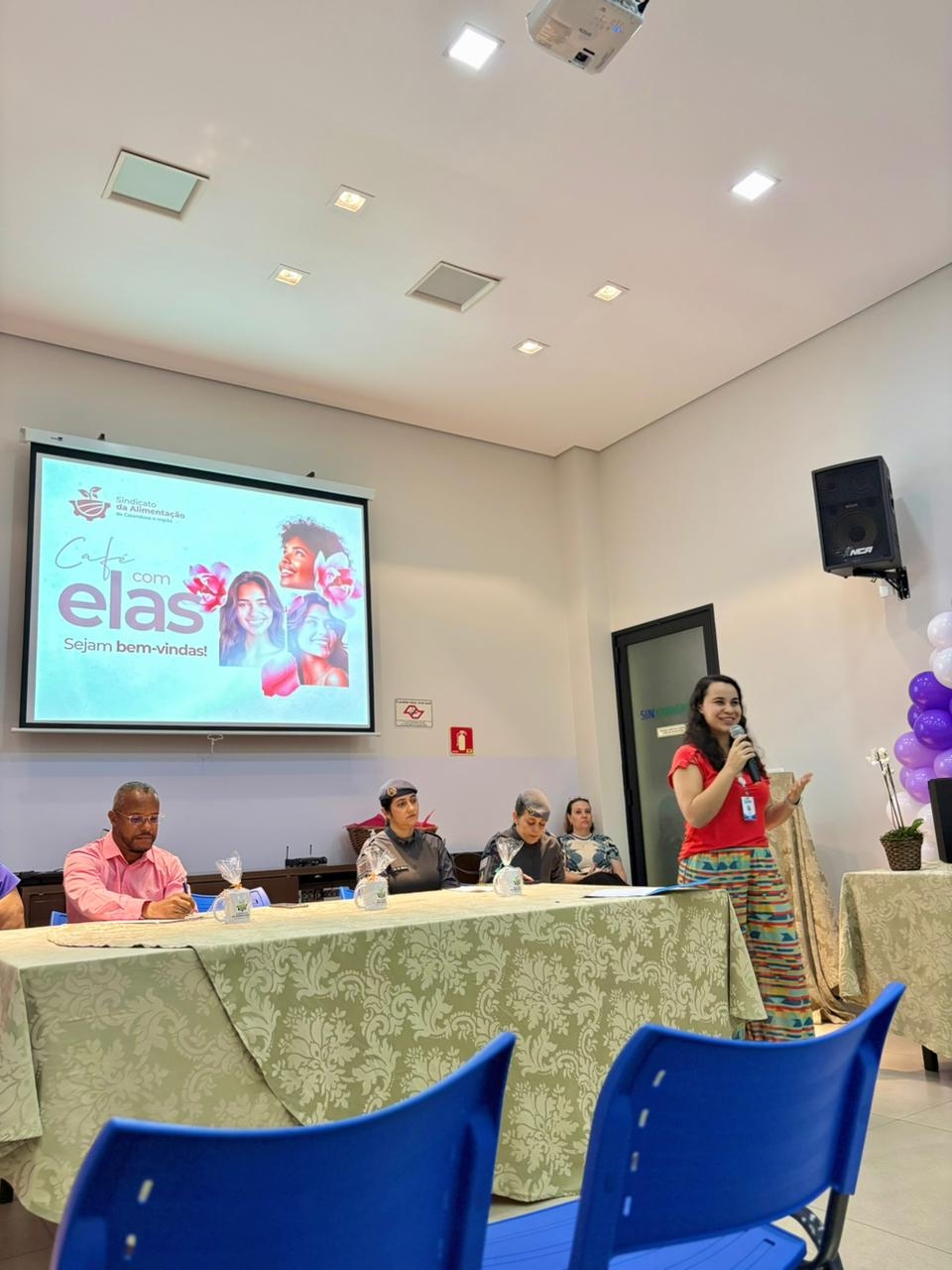 A psicóloga Kézia Veitas, do Padre Albino Saúde (PAS), participou, no dia 26 de março, de palestra promovida pelo Sindicato da Alimentação com foco na conscientização e no enfrentamento da violência contra a mulher.
