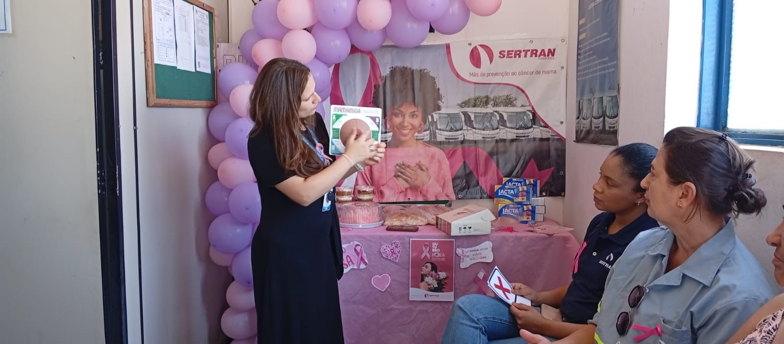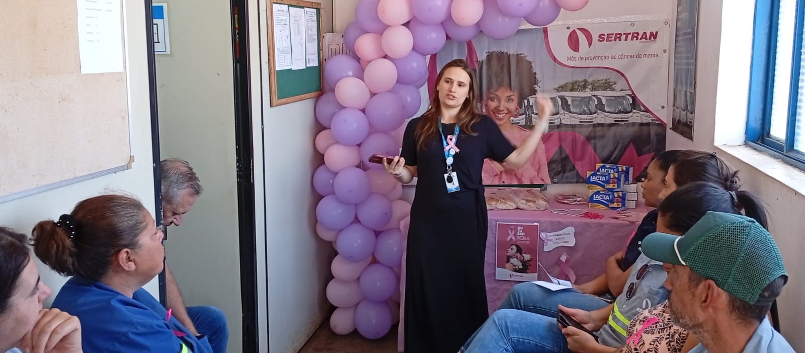 Com o objetivo de conscientizar colaboradores sobre a importância da prevenção e do diagnóstico precoce do câncer de mama, a empresa Sertran Transportes realizou no dia 22 de outubro atividade do Outubro Rosa, conduzida pela enfermeira do PAS Previne, Mariana Frigério Mantovanelli.